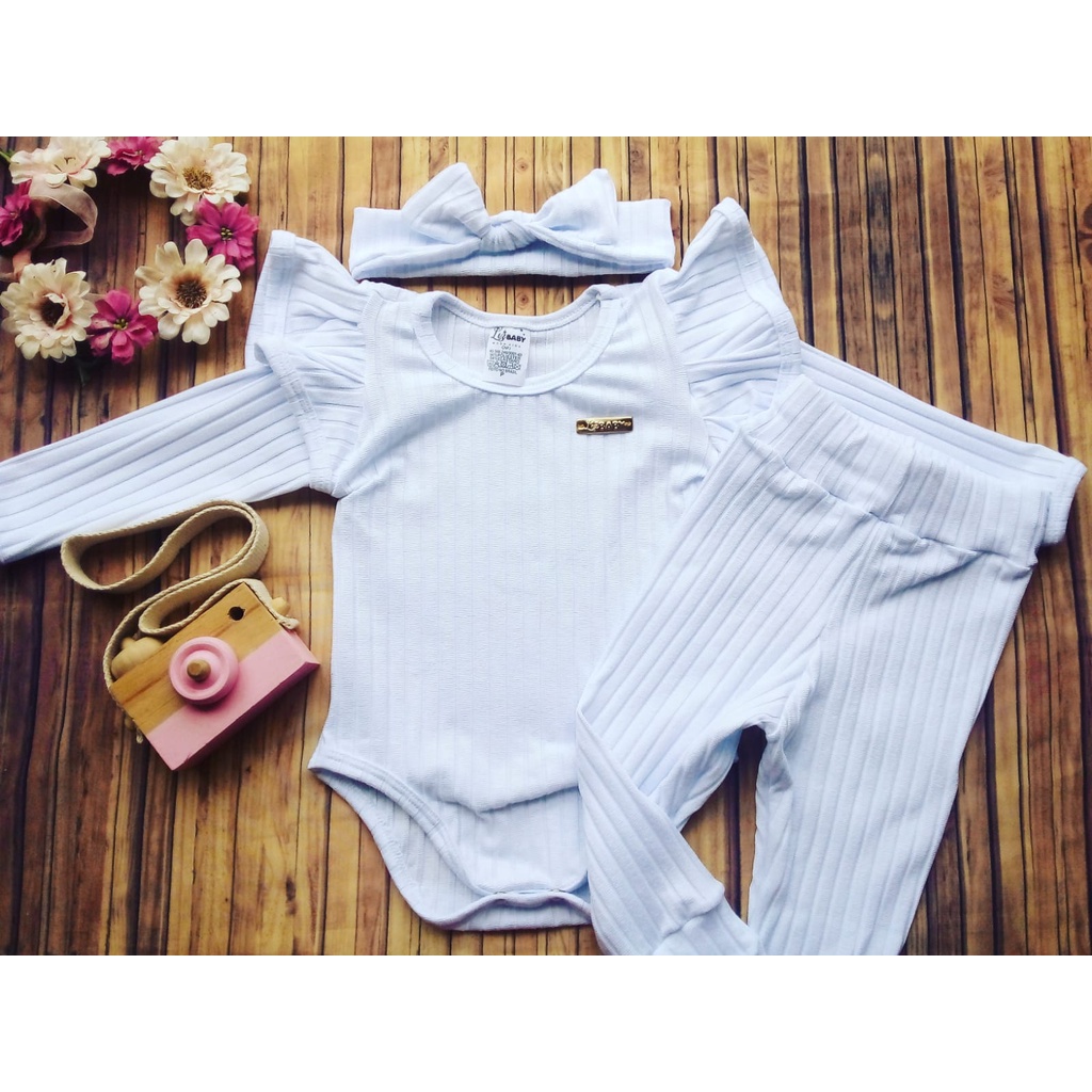 Conjunto menina bebê. Calça, body e faixa de cabelo
