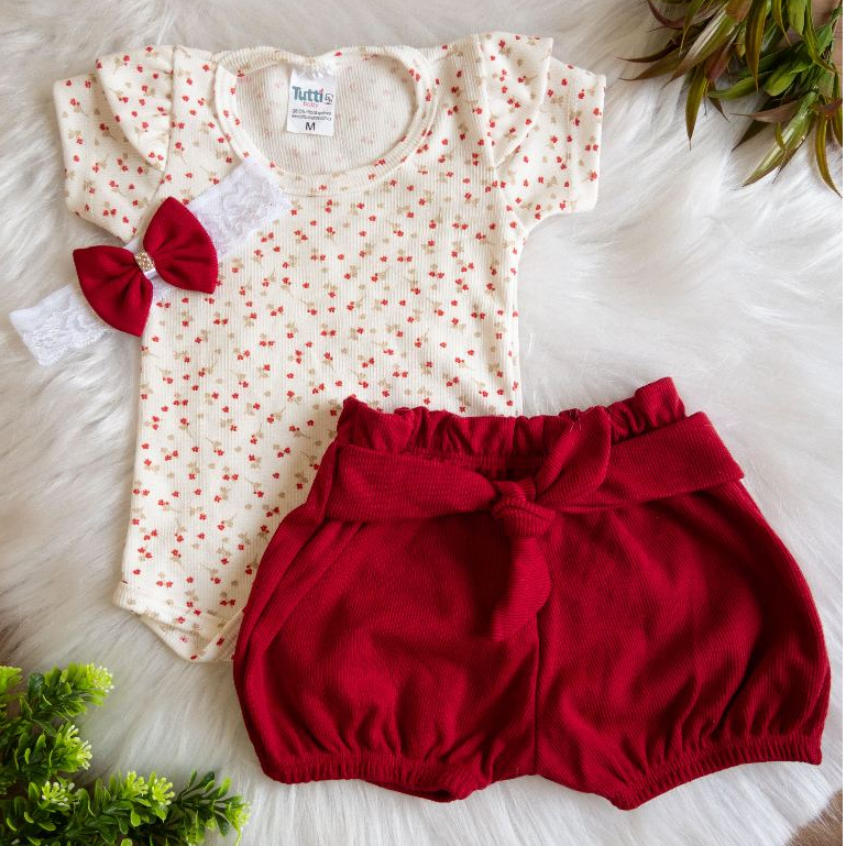 Conjunto Bebe menina body e short + faixa de cabelo