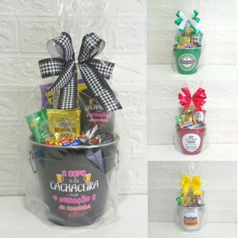 Baldinho Kit Presente Cesta Surpresa Pronto Kit Boteco Baldinho de Gelo Em Alumínio personalizado Com Caneca