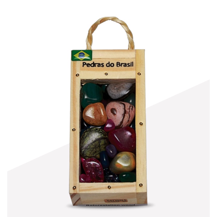 Coleção Caixa Madeira Com Pedras Preciosas Do Brasil