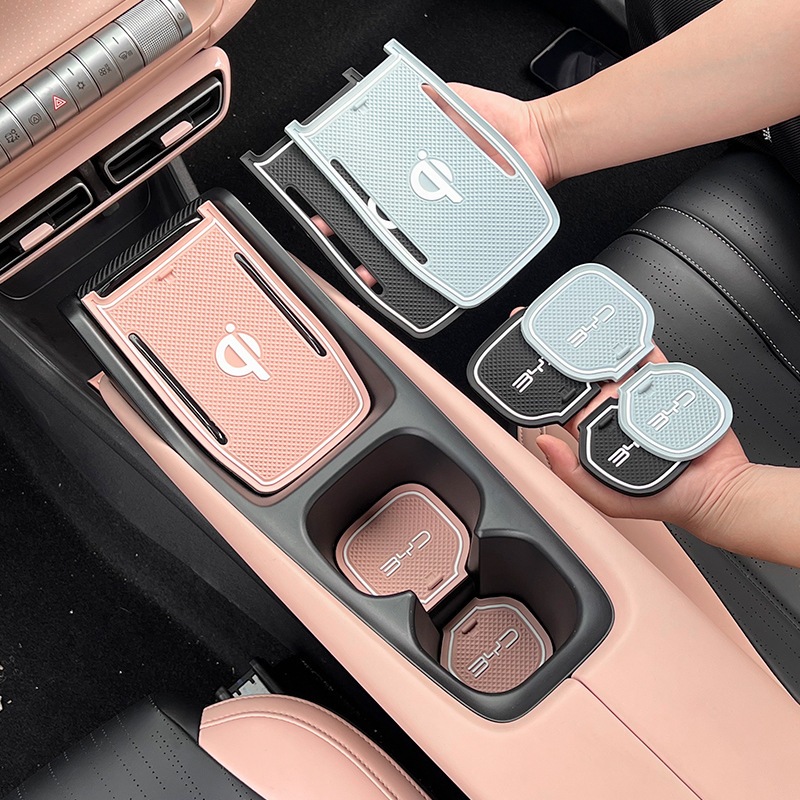 kit 14 Tapetes Interiores Do Carro Porta Copos De Água De Base de carregamento sem fio Silicone Para BYD Dolphin Mini