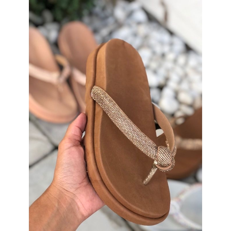 Papete Birken Sandália Feminina Flatform Strass Nó Pedraria Brilho - Promoção dourado Prata Cristal Rose Preto Caramelo - Chinelo nó plataforma