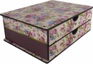 Gaveteiro Organizador Documentos e Suporte Monitor de Mesa 2 Gavetas Floral Rosa Mdf - Shopping do Mdf