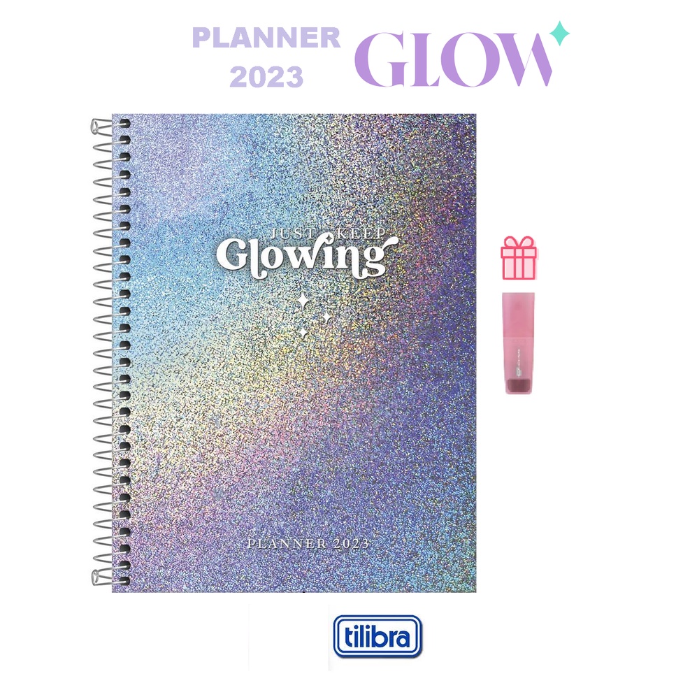 Agenda Planner Espiral Glow 2023 M7 + Marca Texto Mini Tris