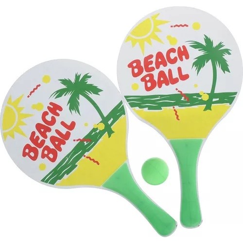 Kit Jogo Frescobol Tênis de Praia Personalizado 2 Raquetes 1 Bolinha Lazer Verão Pronta Entrega