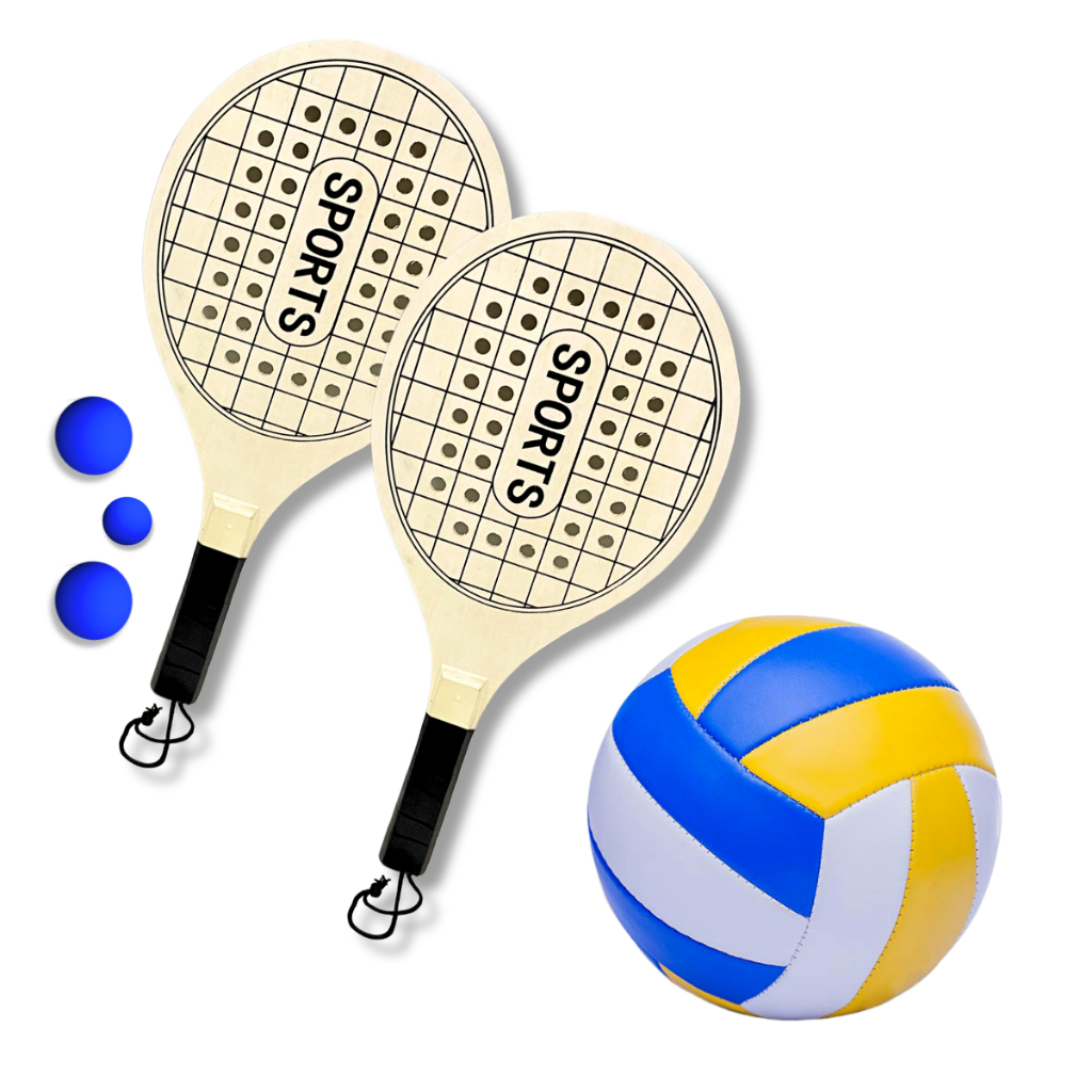 Kit Jogo De Raquetes de Frescobol Praia Madeira + Bola De Vôlei Voleibol Tamanho Padrão Quadra