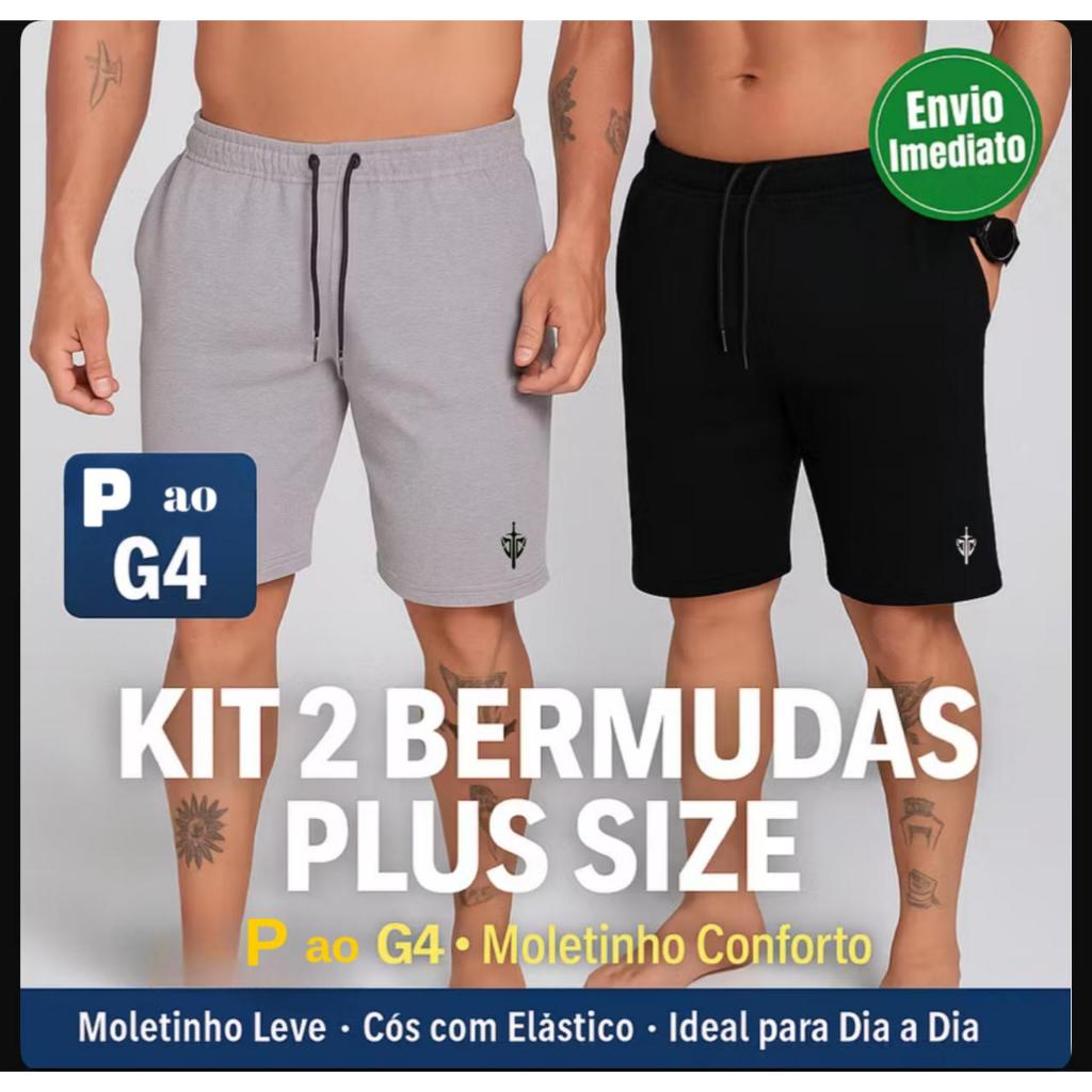 Kit 2 Bermuda Elastano Plus Size P ao G3 Masculina Shorts Academia