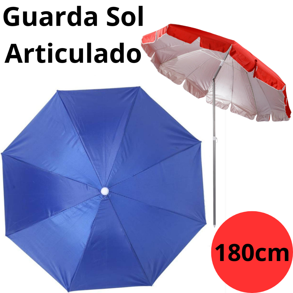 Guarda Sol Gigante 1,80m Praia Piscina E Pesca Proteção UV Kit c/ ou sem Saca Areia