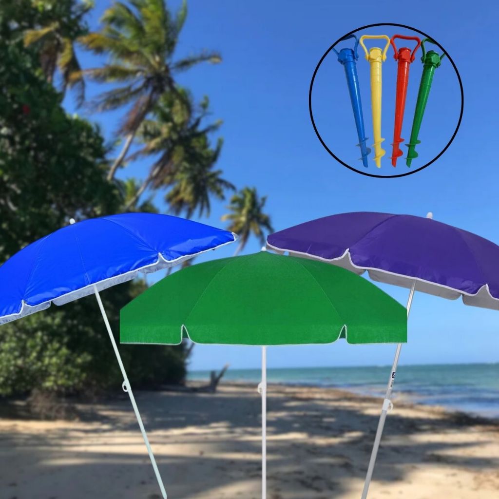 Guarda Sol 1,90m Praia Piscina E Pesca Proteção UV Kit c/ ou sem Ancora