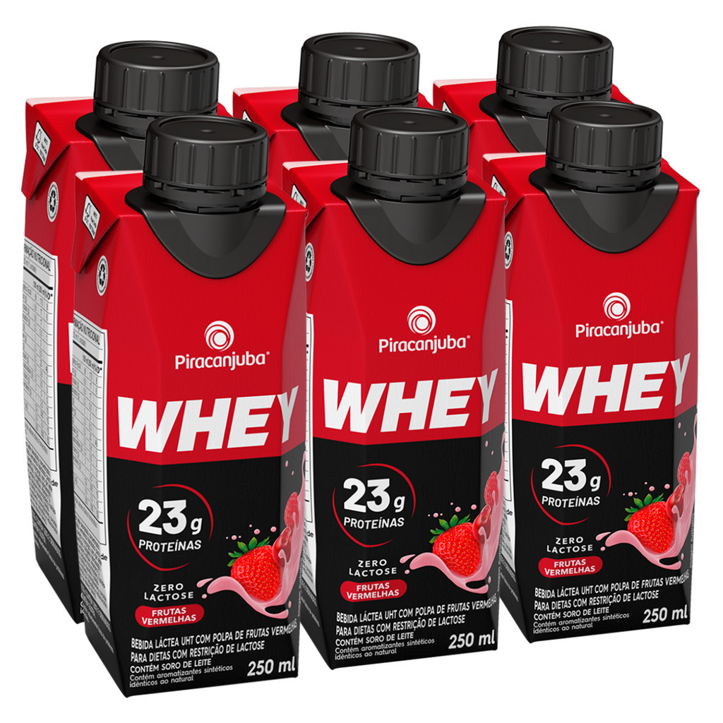 Pack 6 und. Bebida Láctea Whey 23g de Proteína Piracanjuba Zero Lactose Sabor Frutas Vermelhas 250ml
