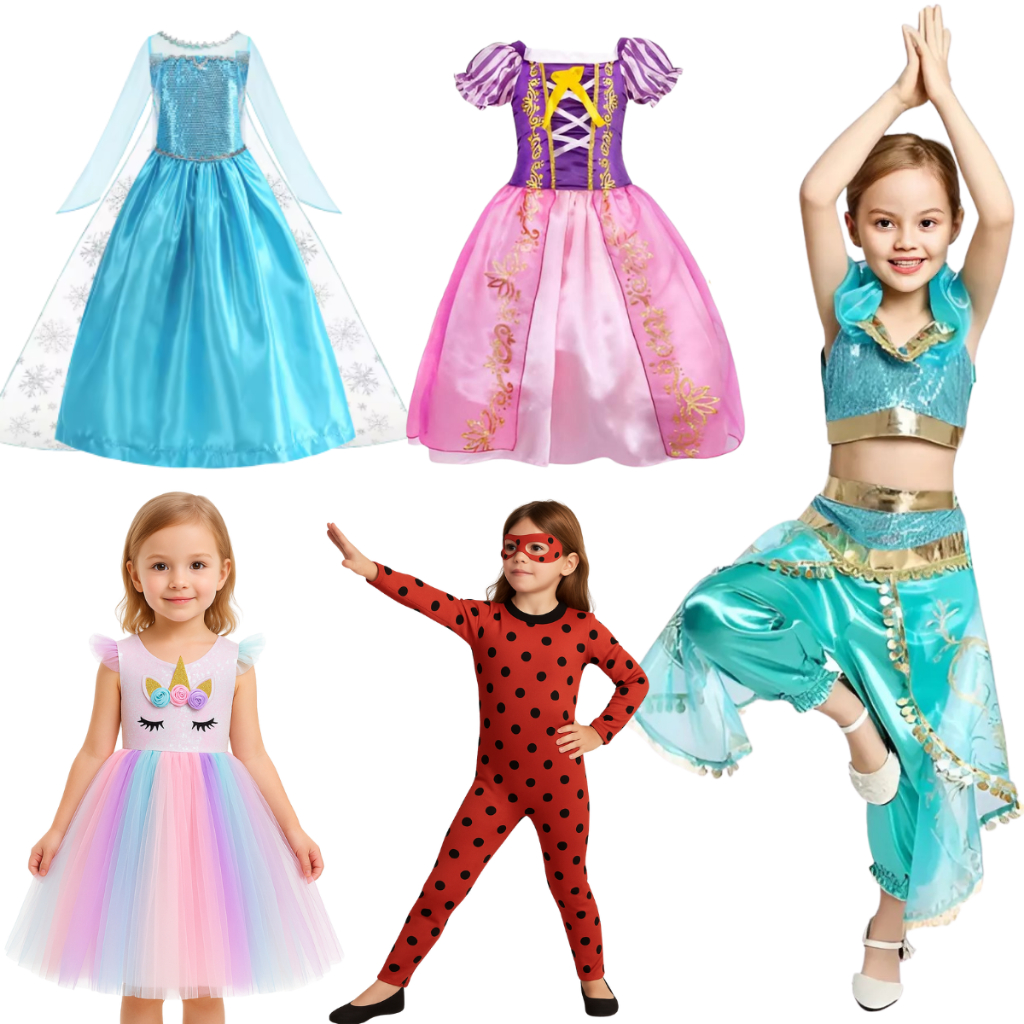 FANTASIA INFANTIL VESTIDO FESTA PRINCESA TIARA UNICORNIO LUXO MENINAS SAIA FROZEN ELSA LADYBUG