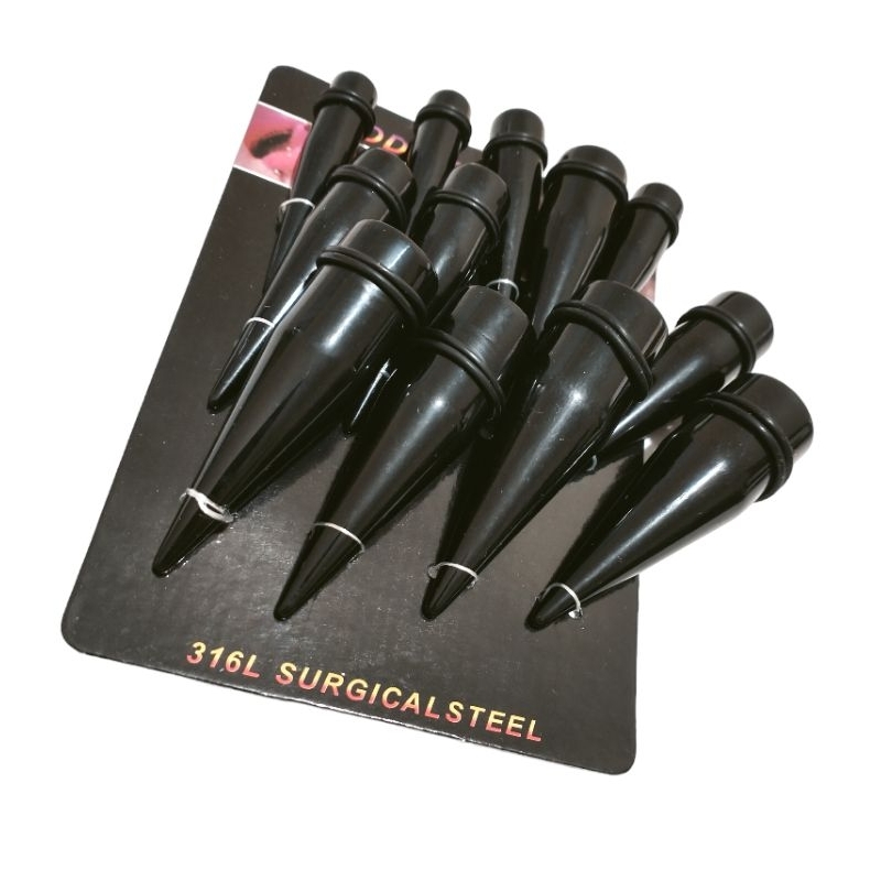 alargador estaca preto plástico tamanhos 10mm 12mm 14mm 16mm 18mm 20mm kit cartela inteira uso unissex moda piercing