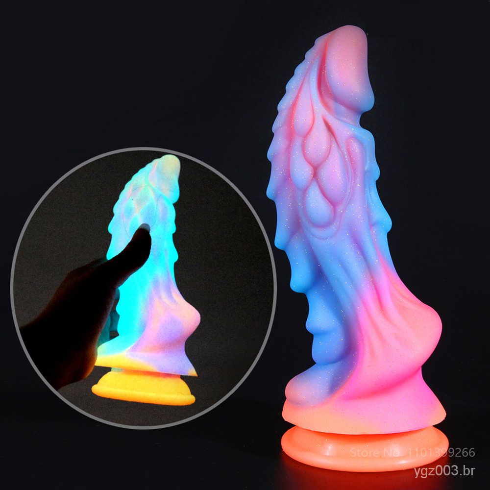 Novo vibrador luminoso anal brinquedos sexuais para mulheres homens cor brilhando pênis enorme dragão monstro dildo butt plug adulto brinquedos 8CAC
