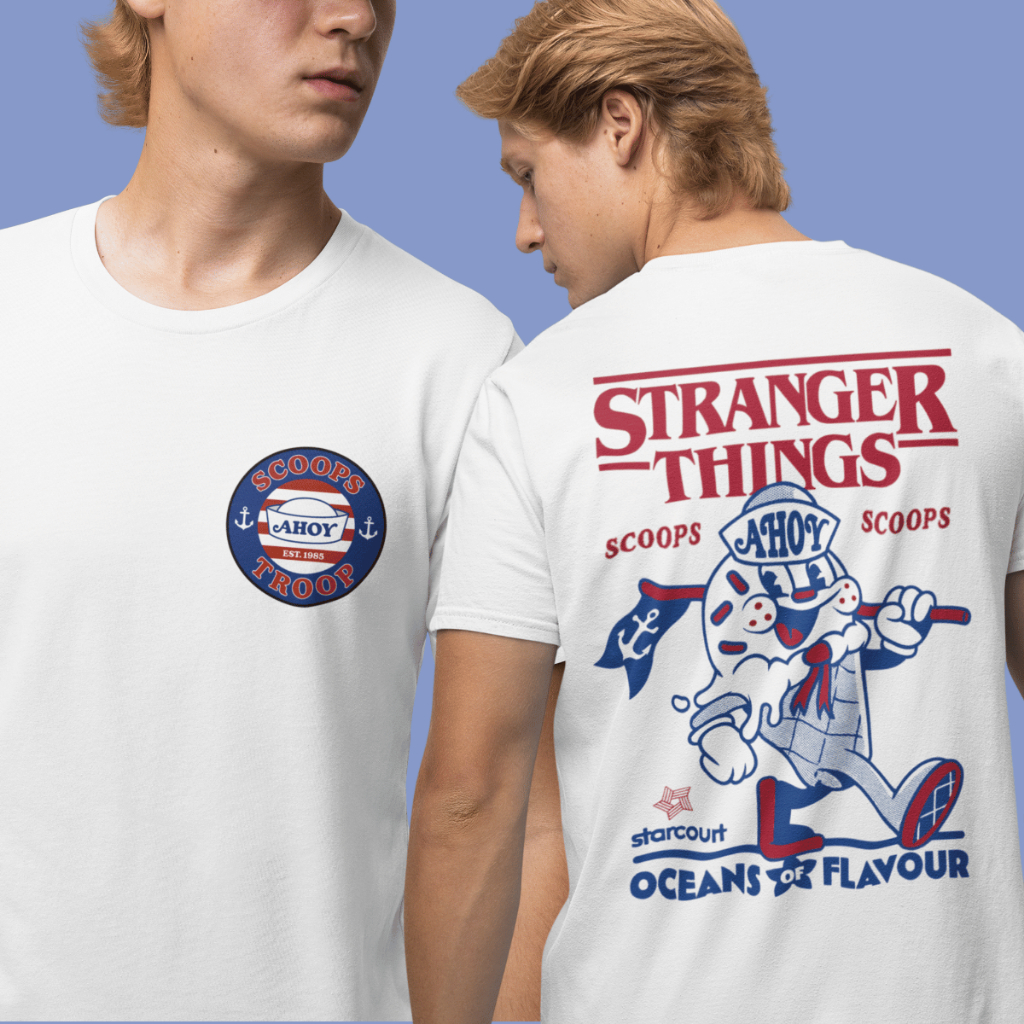 Camiseta Stranger Things Sorveteria Scoops Ahoy Moda Blusa Casual Unissex 100% Algodão