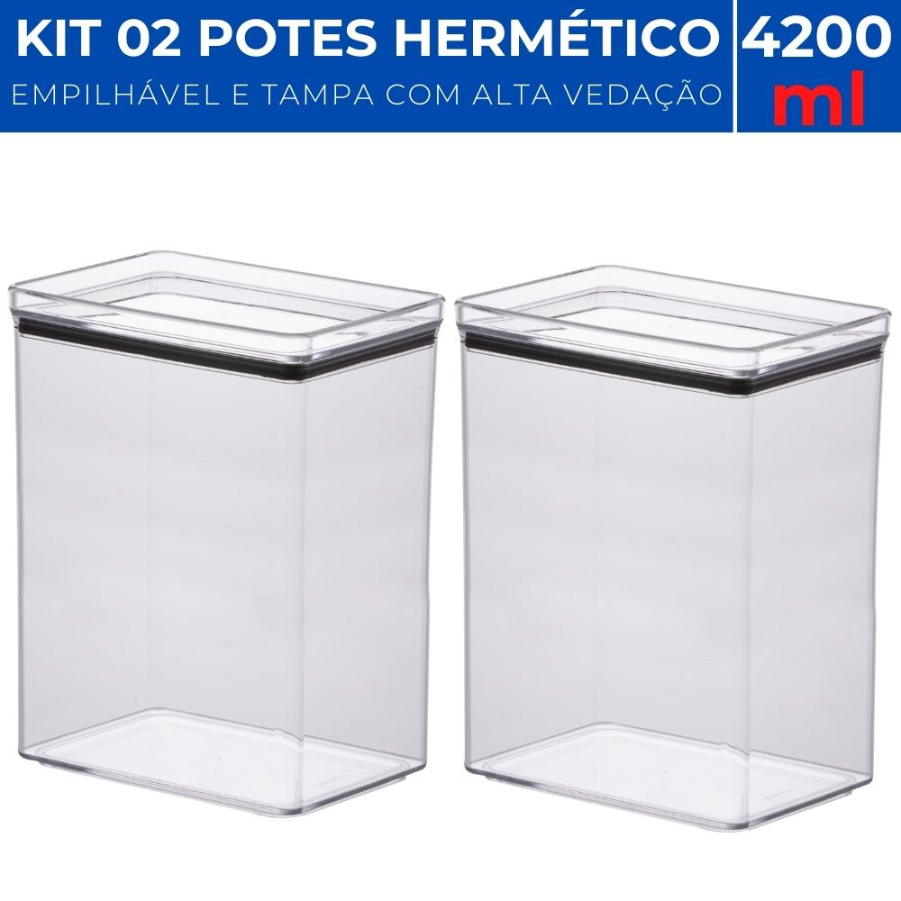 Kit 2 Pote Hermético Lumini Multiuso Porta Mantimentos Empilhavel De Acrílico 4200ml