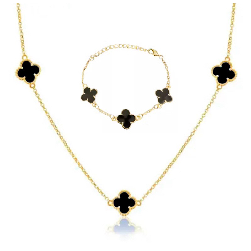 Colar e Pulseira Trevo a Ouro 18k Prata 925 Neymar Virgínia Griffe Antialérgico