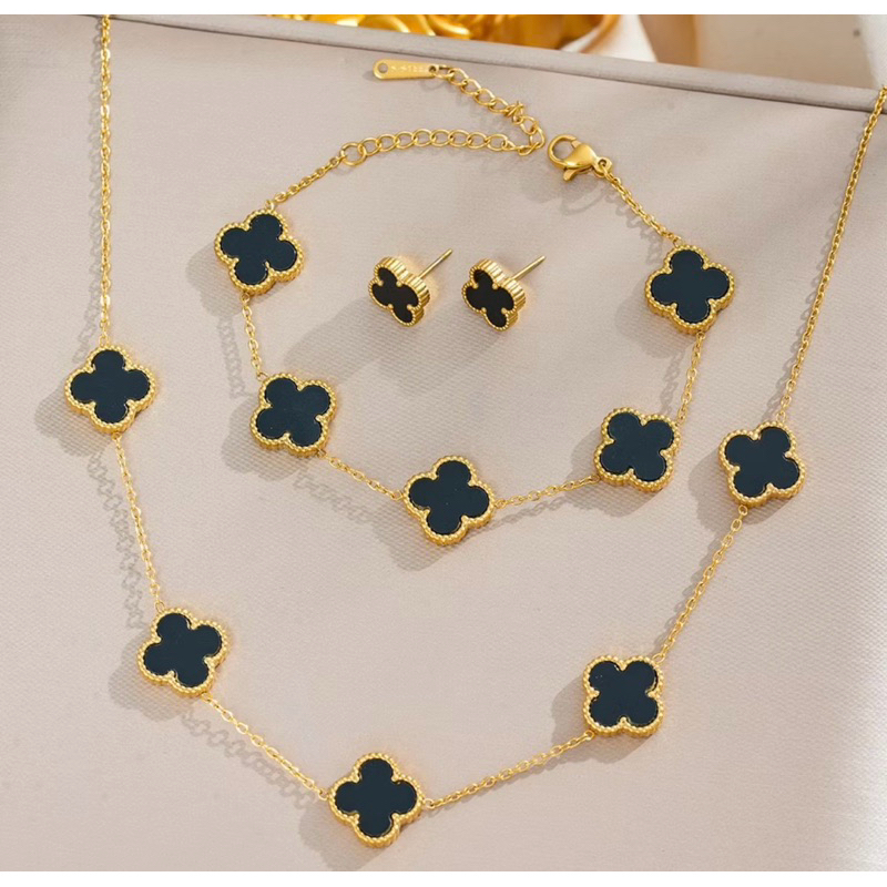 Conjunto Inspiração Virginia Vintage Alhambra Trevo Quatro FolhasFlor Blogueira da Moda de Marca Colar Alta Joalheria Ouro Brinco e Pulseira SHK03