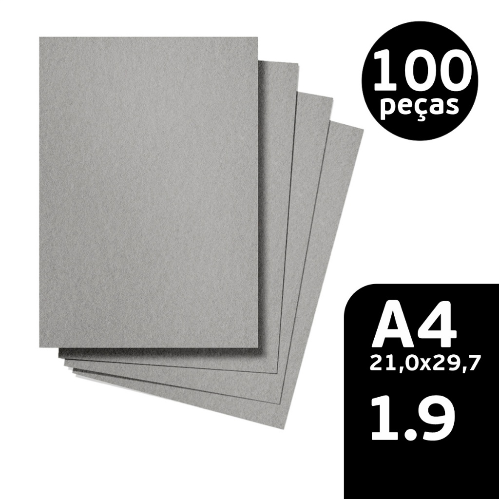100 Peças Papelão Cinza Holler 1.9mm A4(21,0x29,7)