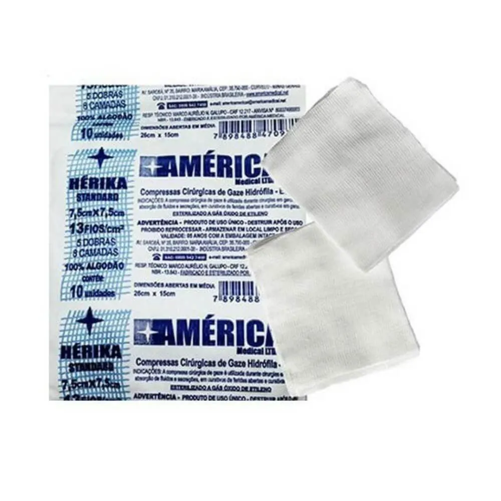 AMéRICA COMPRESSA DE GAZE ESTéRIL 13 FIOS C/10