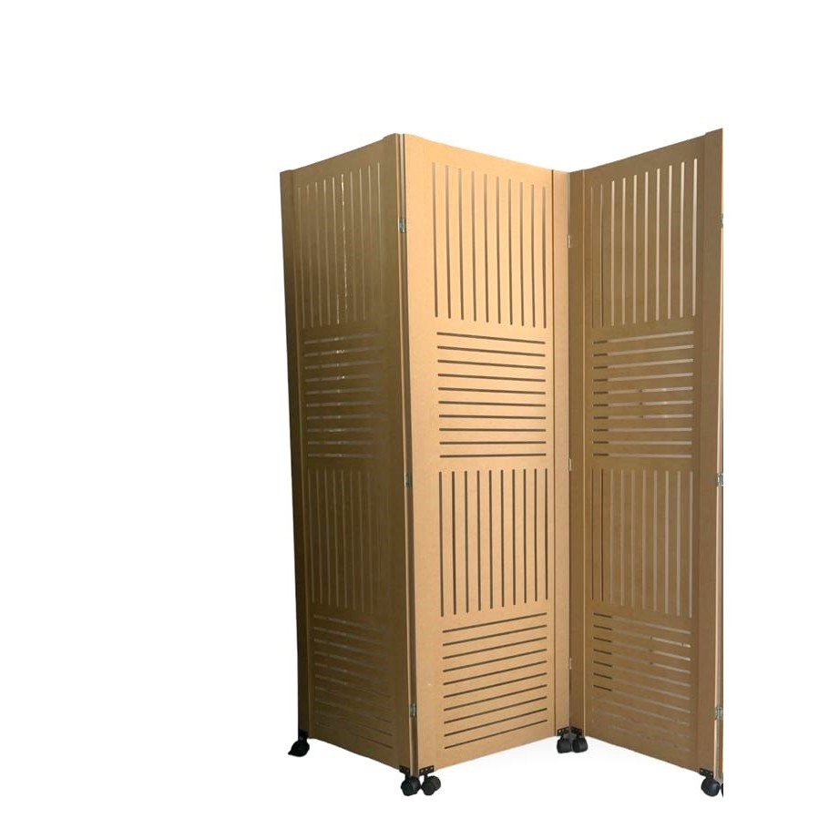 Biombo ripado divisória de ambiente madeira mdf 3 folhas com rodinhas Bipartido 1,80 altura x 1,50 comprimento sanfonado