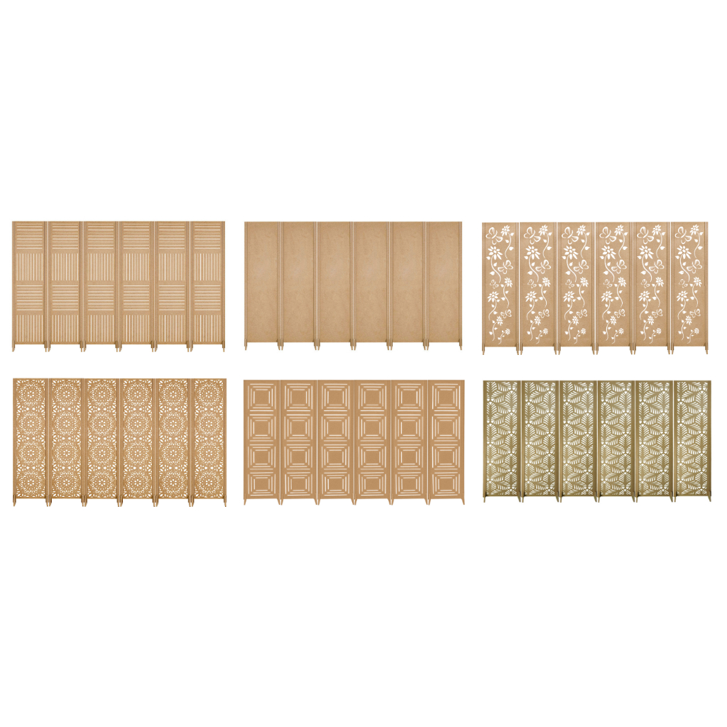 6 Biombo Inteiro Divisória Separador De Ambiente Painel Madeira Divisor Folha Mdf Cru Com Base Pé