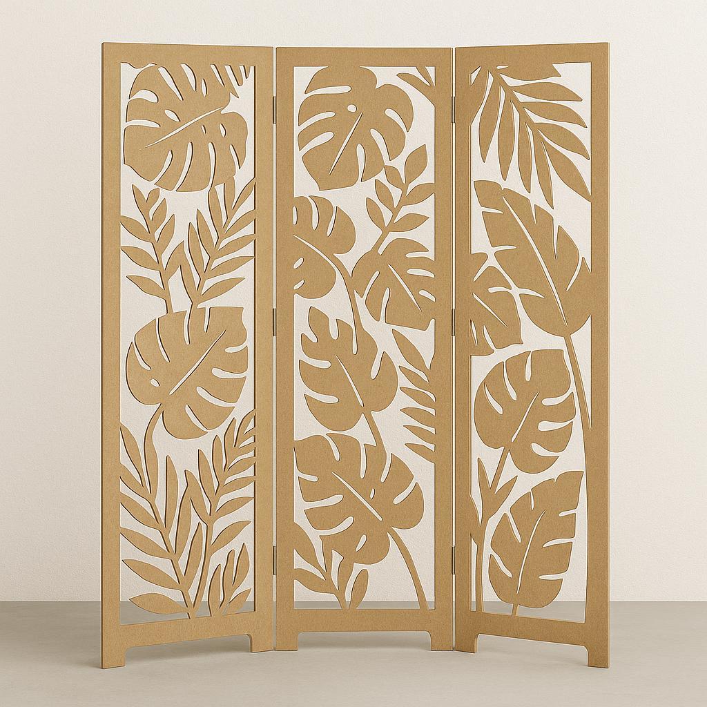 Divisória de Ambiente com Estampa de Folhas Biombo Triplo de MDF