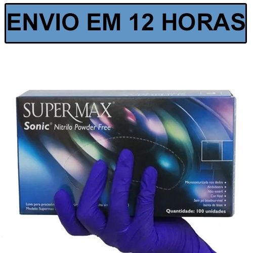 Luva Nitrilica Sem Pó Sonic Azul - P/m/g/gg - Caixa C/100 Und - Supermax