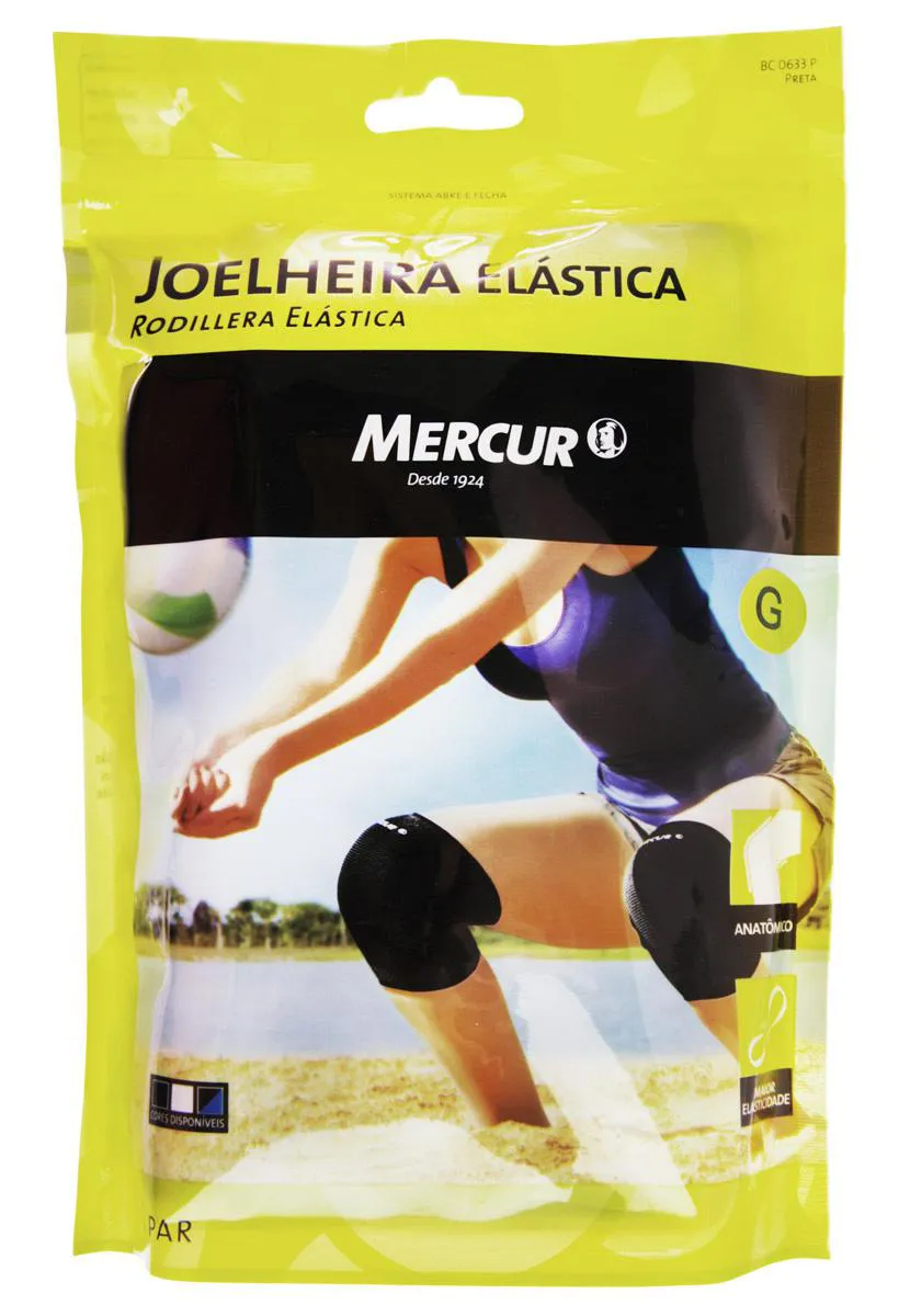 Joelheira Elástica Mercur Preta Tamanho M com 1 Par