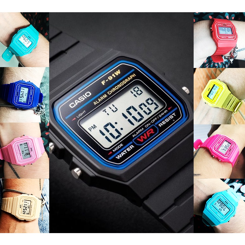 Relogio De Pulso Digital Unissex Modelo Retro Vintage Casio f-91 Digital Masculino Feminino Preto e Colorido
