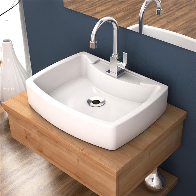 Cuba Sobrepor Para Banheiro Pia de Apoio Para Lavabo Branca Retangular em Mármore Sintético
