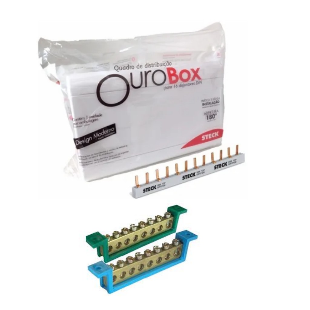 Quadro de embutir para 36 disjuntores DIN branco porta opaca Ouro Box Steck