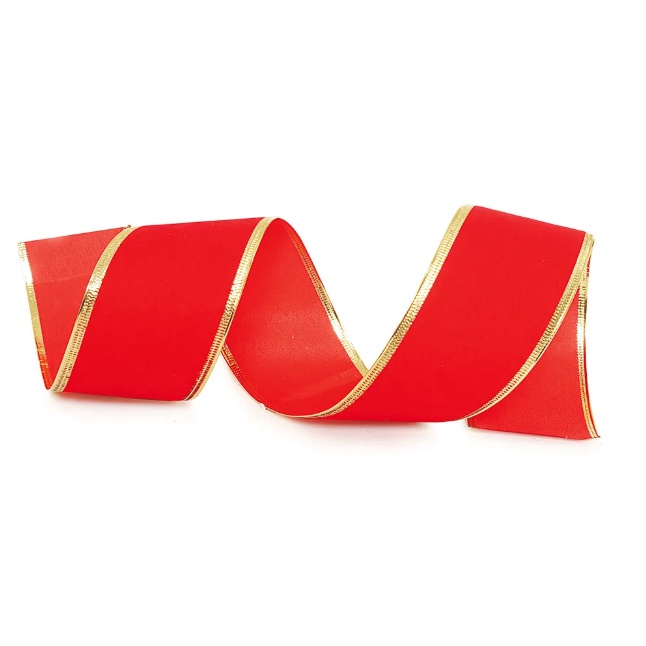 Fita de Veludo com Filete Vermelho e Dourado de 6,3cmx9,14m (Fitas Natalinas) - 1 Unidade