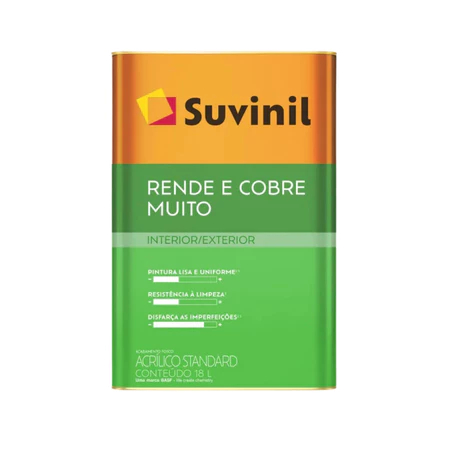 Suvinil Tinta Acrílica Parede Fosca Rende e Cobre Muito Alto Rendimento 18L e 3,6L - Branco