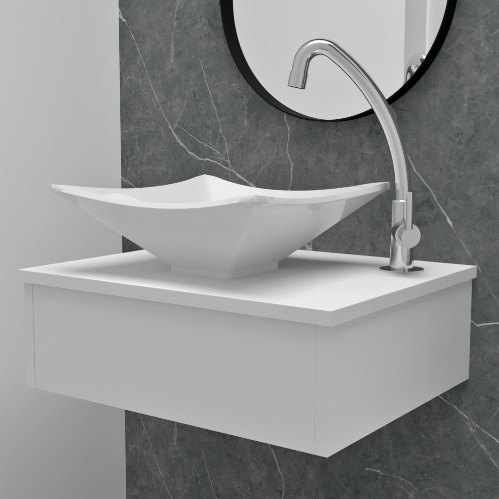 Gabinete Bancada para Banheiro em Mdf e Cuba de Apoio Quadrada 30cm