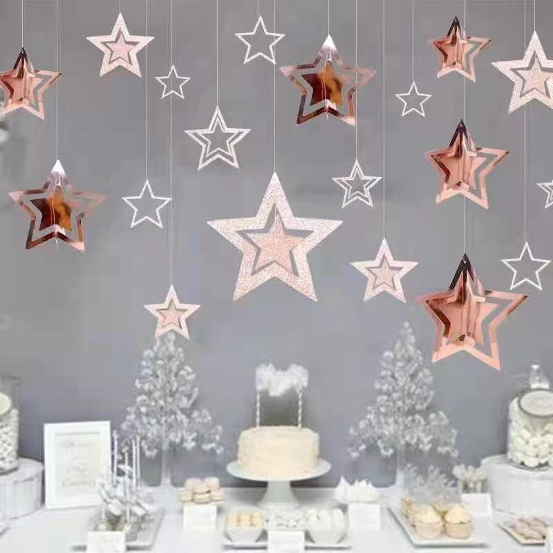 Kit 11 Enfetes De Estrelas Dourada /Rose /E Prata Panel Festa