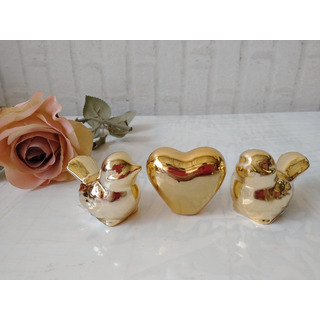 Kit Conjunto Com Enfeite Decorativo de Passarinhos e Coração Dourado/Prata ou Rose Love