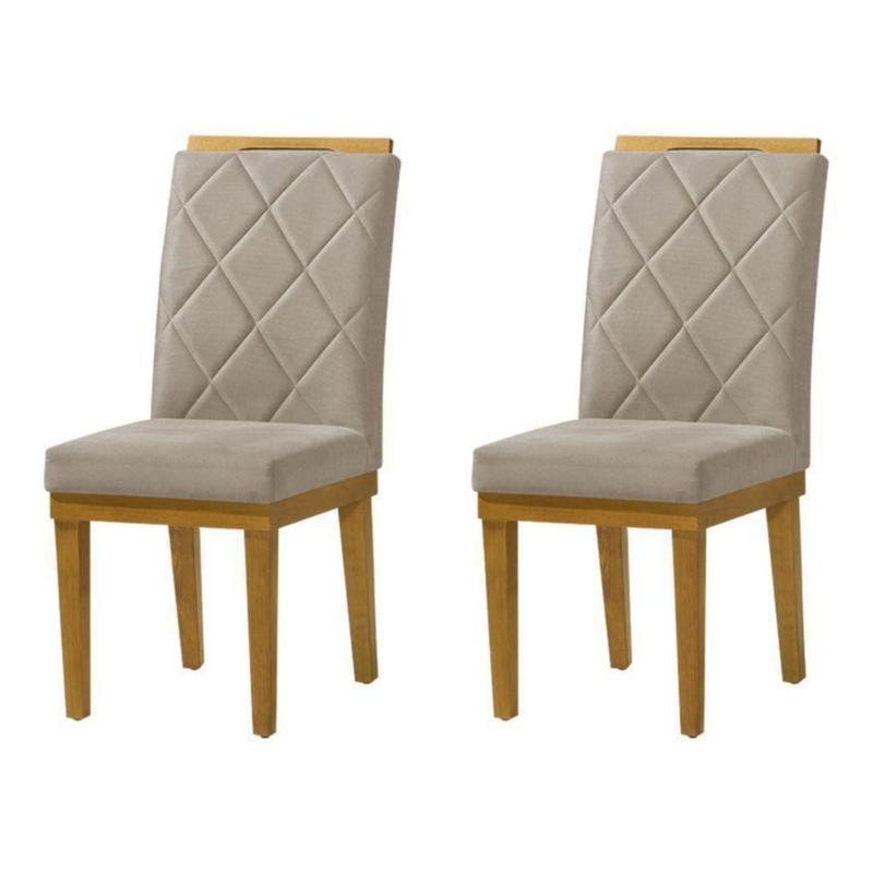 Kit 02 Cadeira Sala De Jantar Estofada Suede Base Madeira
