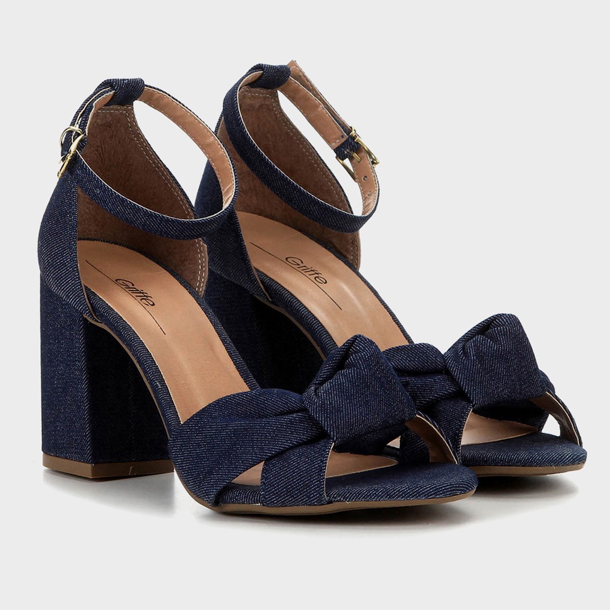 Sandália Jeans Griffe Salto Grosso Nó Feminina