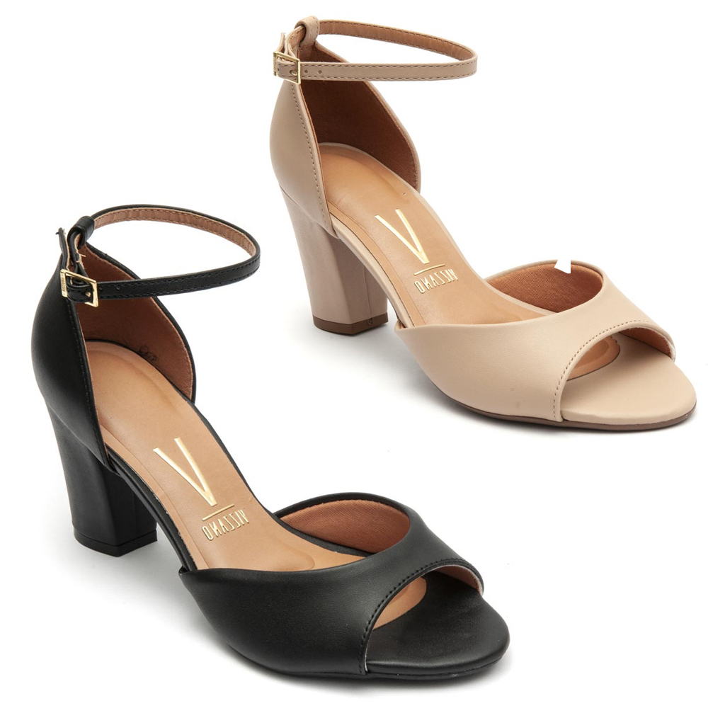 Sandália Vizzano Salto Grosso Médio Traseira Fechada Feminina