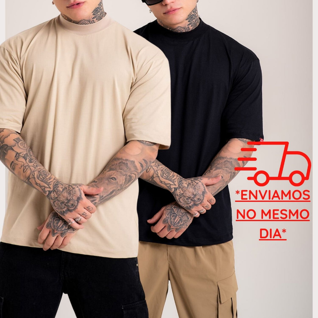 Camiseta Caqui Preta Oversized Streetwear Masculina 100% Algodão 30.1 Padrão Americano