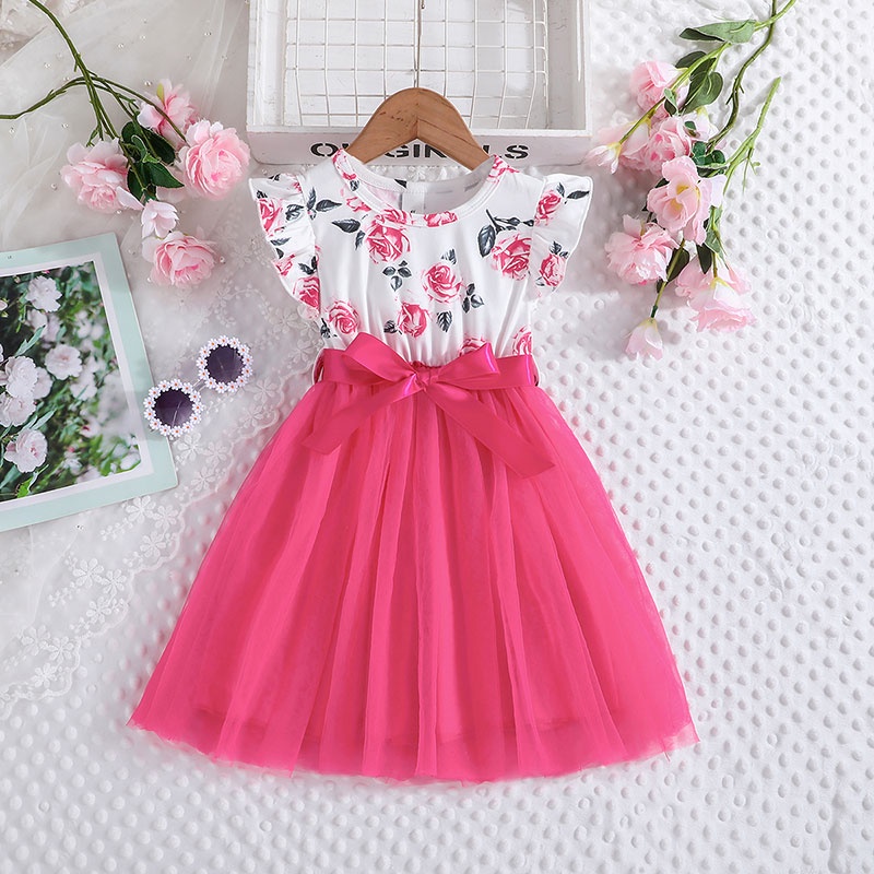Vestido De Bebê Menina Crianças 4-7 anos Moda Verão Babado Manga Lindo floral Tule Vestidos De Princesa Infantil