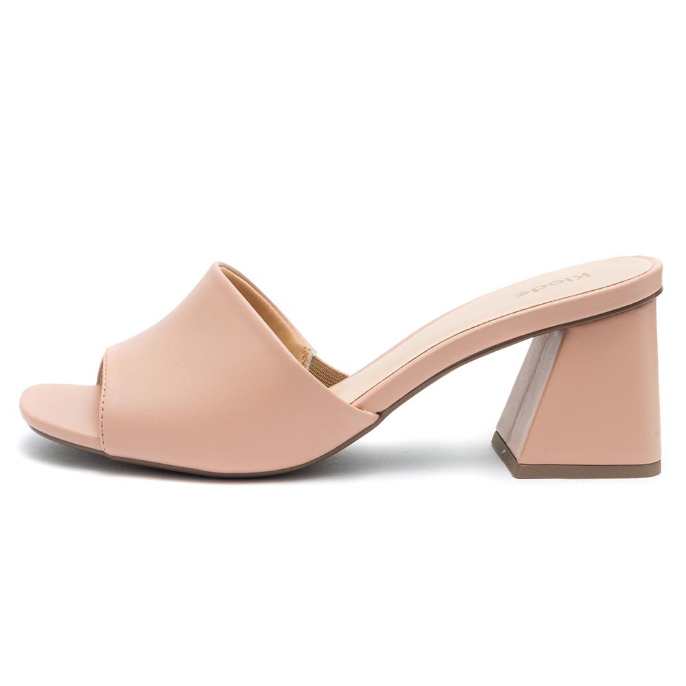 Tamanco Feminino Klode Mule Nude Salto Médio Bloco Grosso Casual Confortável Moda Sandália Original