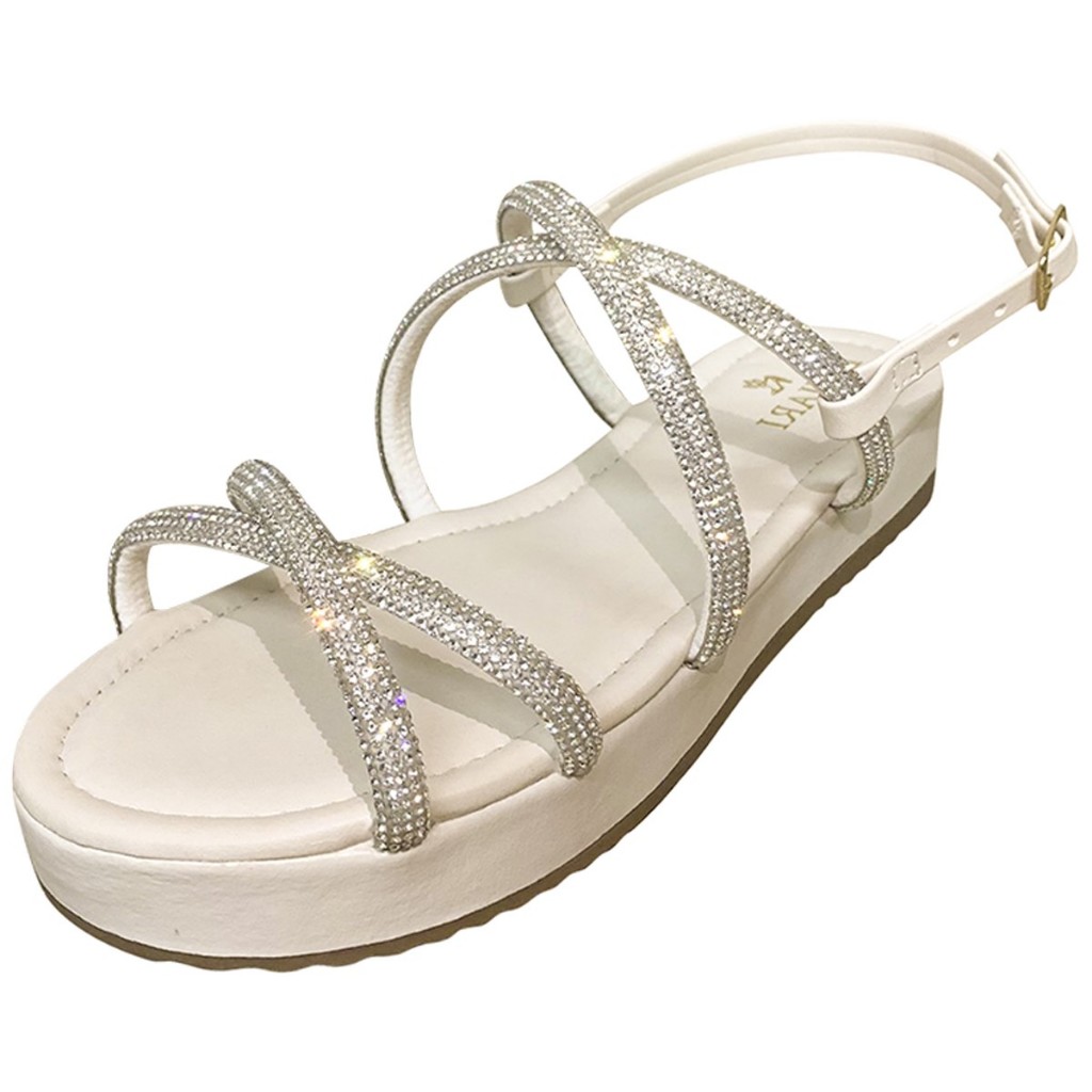Sandalia Papete Flatform Feminina Brilho Com Tiras De Strass Of White
