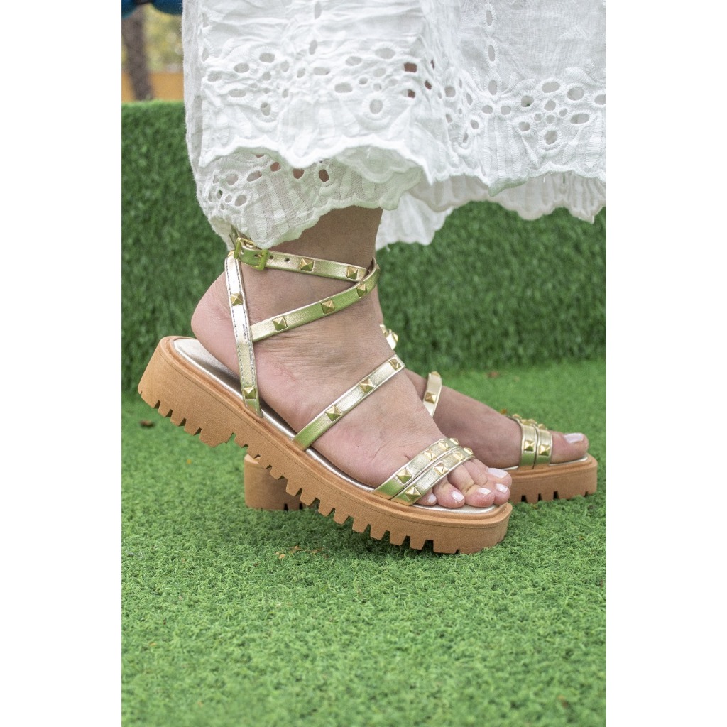 Papete Sandália Feminina Flatform Tratorada Tiras Spikes