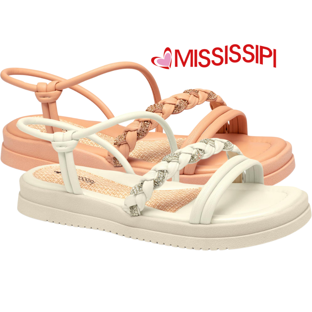 Sandalia Papete Mississipi Original Feminina Sandalia Flatform Papete Tiras Trançadas Com Brilho Casual Calce Facil Conforto