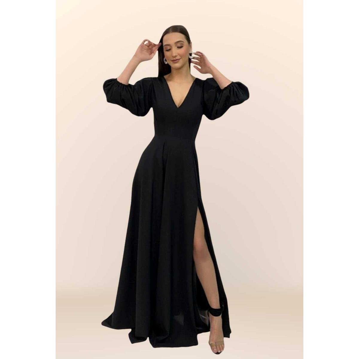 Vestido de Festa com Manga Curta Louise Nana Marie Vestido Longo Preto