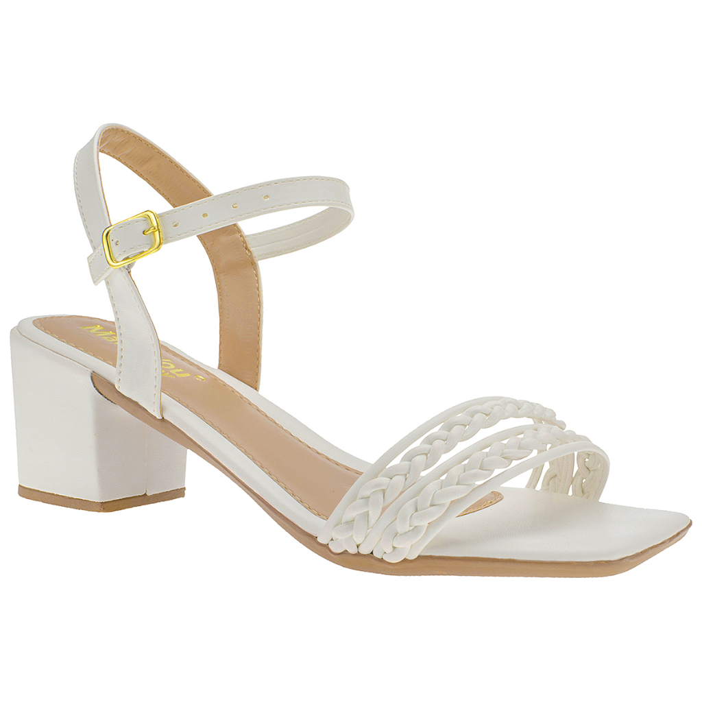Sandália Feminina Tiras Strass Lumiss Salto Baixo Grosso Saltinho Confortável Off White