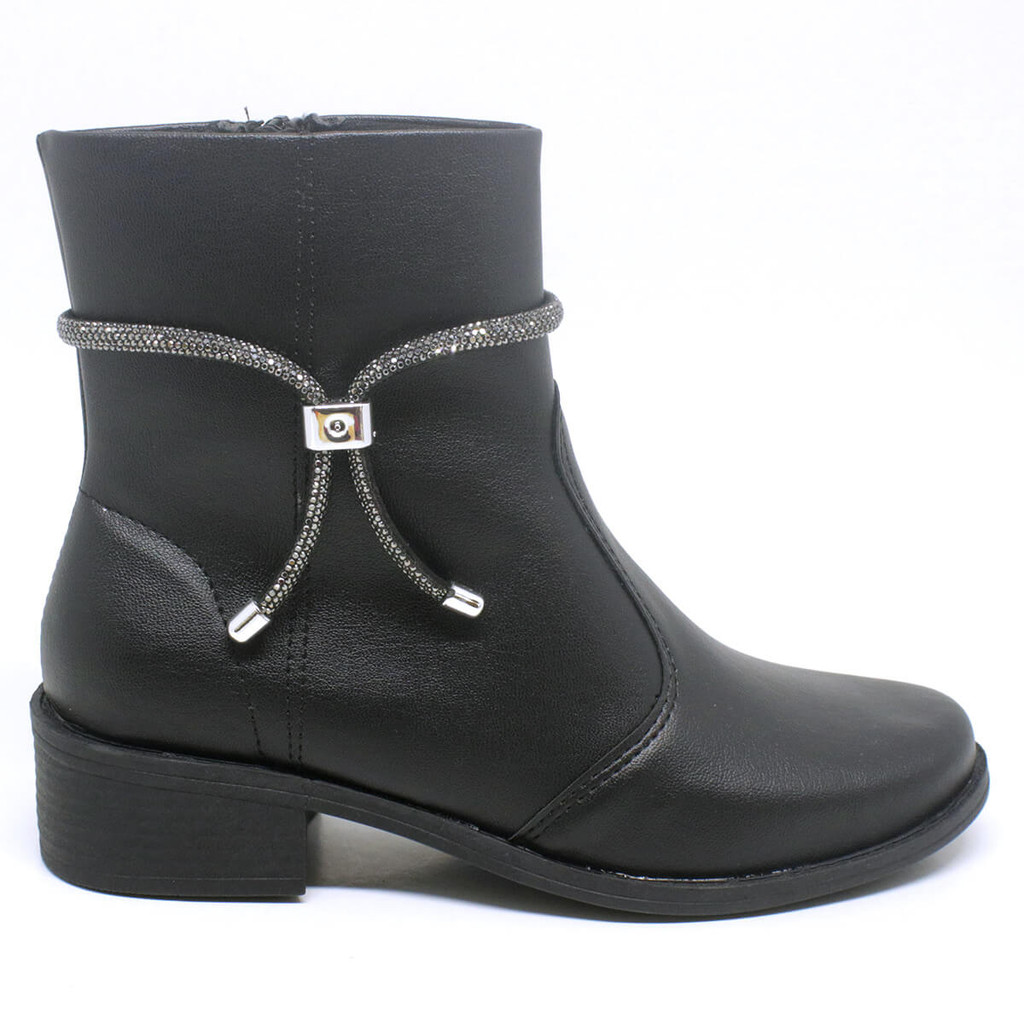 Bota Feminina Salto Baixo Cano Curto Bico Redondo Coturno Feminino Laço Zíper Preto Figueiroa