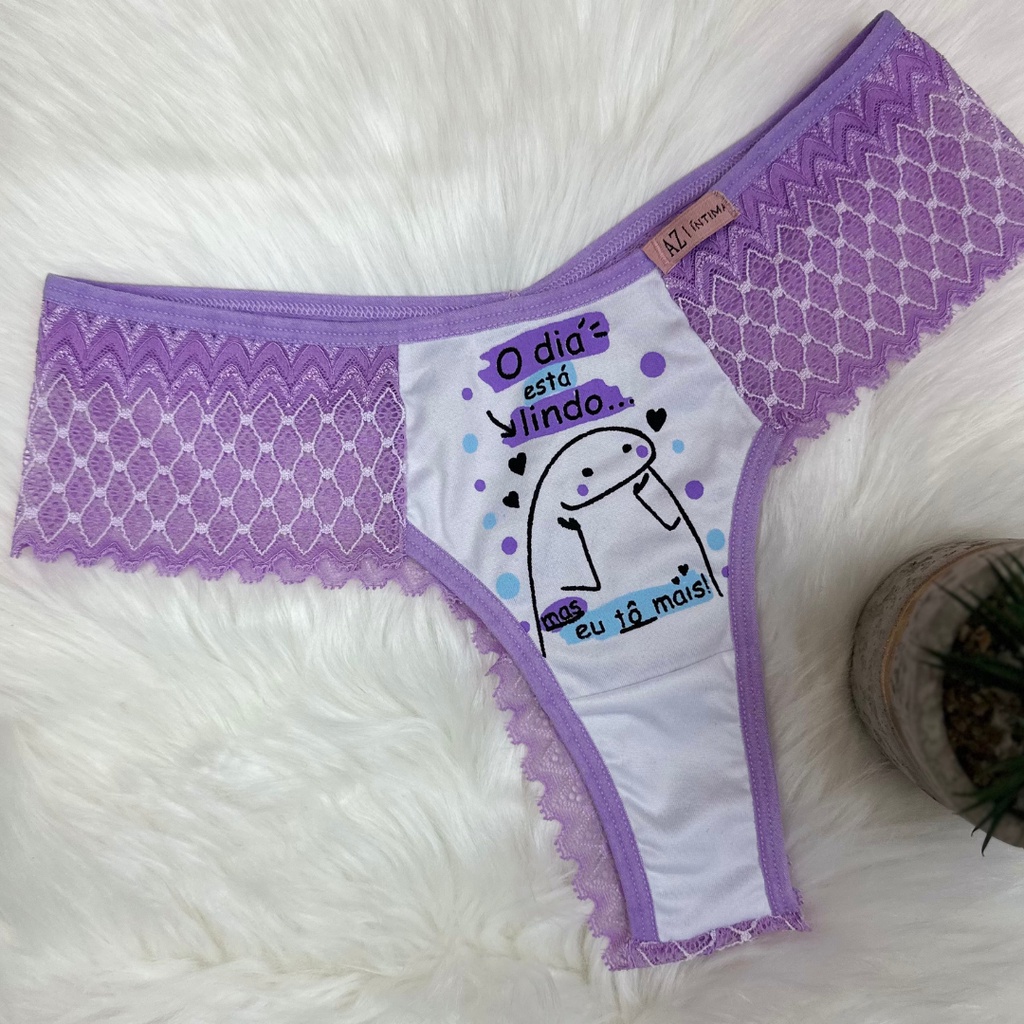Calcinha Tanga Fio Estampada Com Renda Sensual
