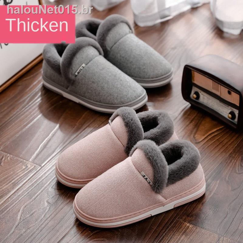 Pantufa de Vaquinha Fechada Sola de Borracha Antiderrapante Confortável Inverno